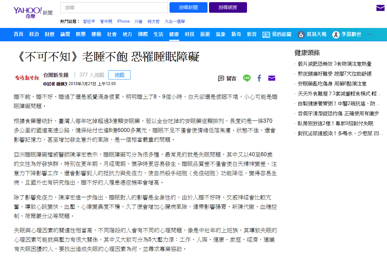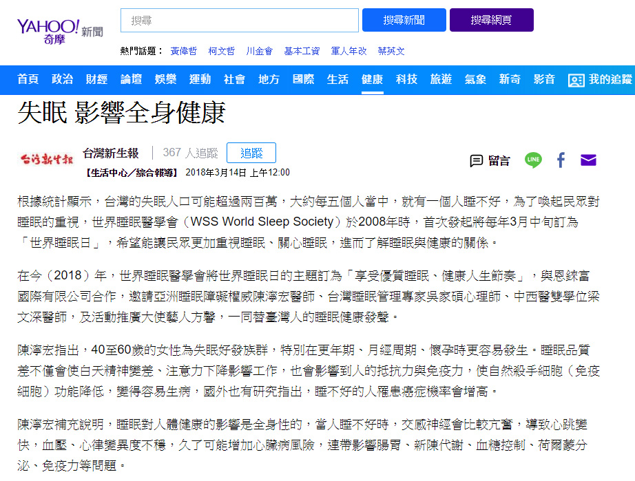 | yahoo!新聞-方馨為睡眠健康發聲 |