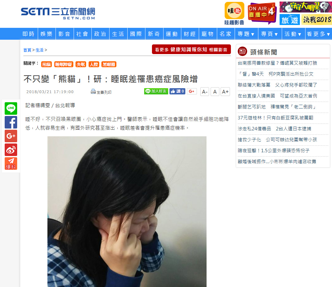 | 三立新聞-睡眠差罹患癌症風險增 |