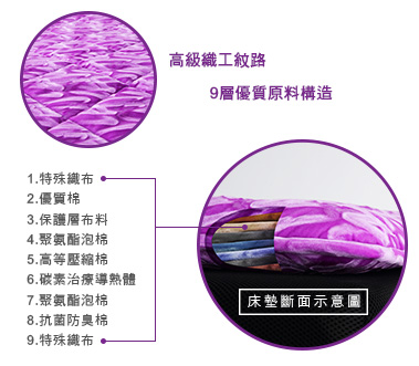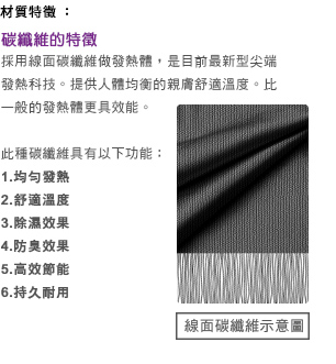 透過特殊碳纖維散發出遠紅外線溫熱,保持健康體溫,調節免疫力。